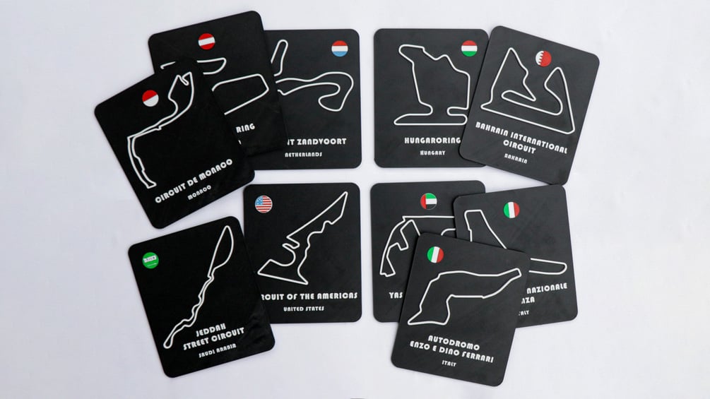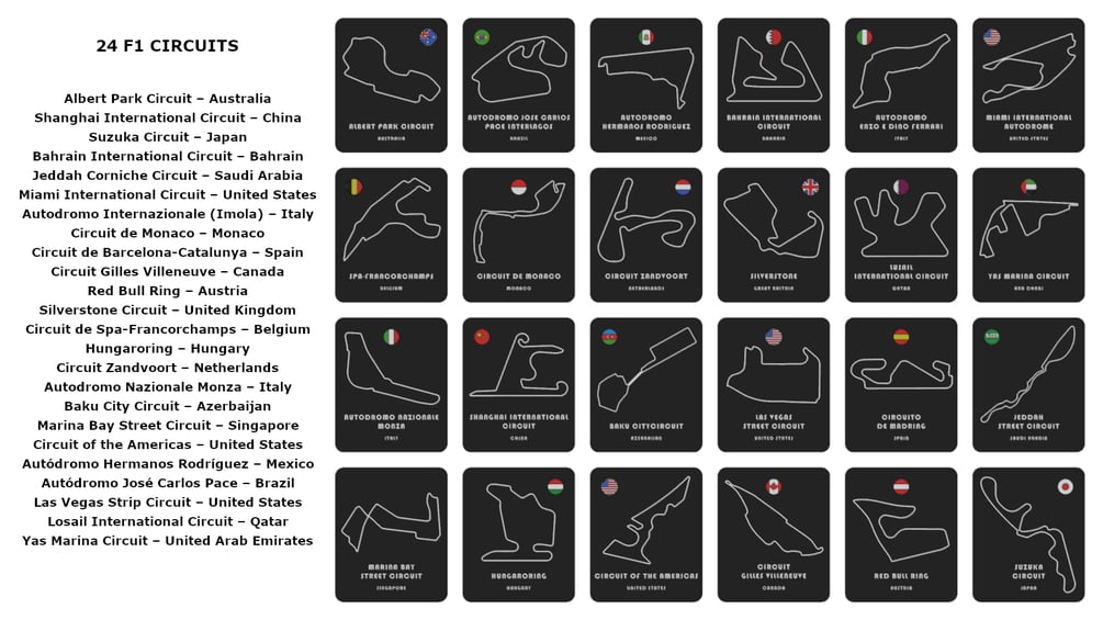 3D-printable Formula 1 circuit collection featuring all 24 circuits, each with 4 design variations. Ideal for motorsport fans and collectors, compatible with all multicolor FDM 3D printers.